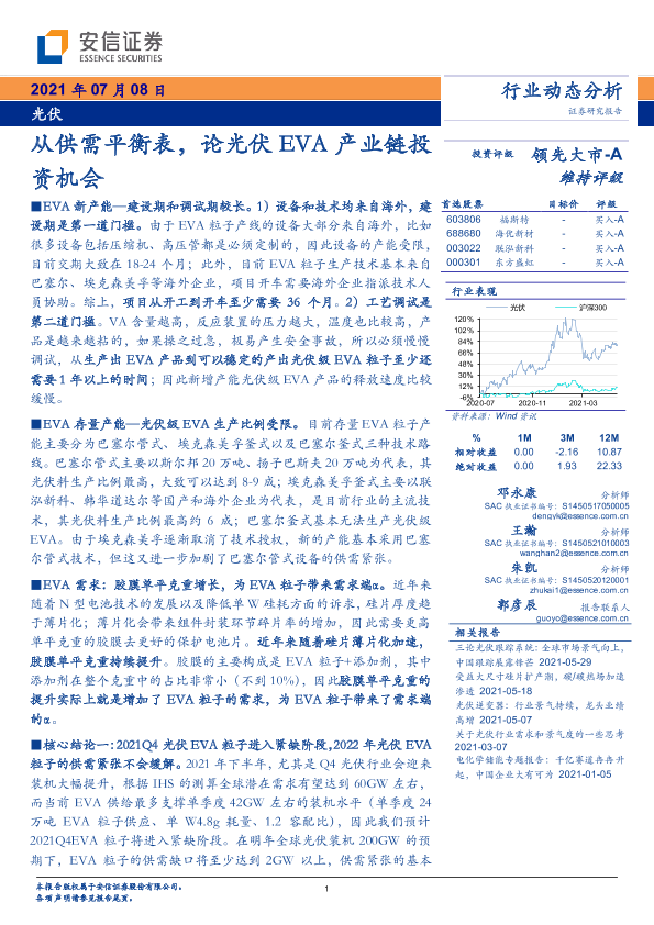 【安信证券】【20210708】从供需平衡表,论光伏EVA产业链投资机会-10页
