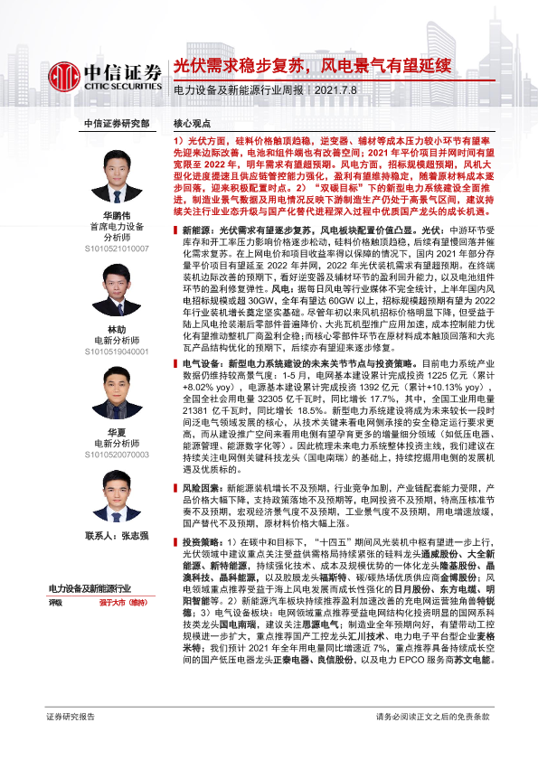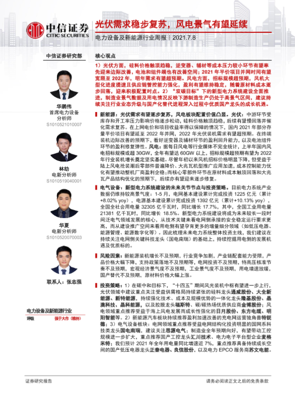 【中信证券】【20210708】电力设备及新能源行业周报:光伏需求稳步复苏,风电景气有望延续-14页