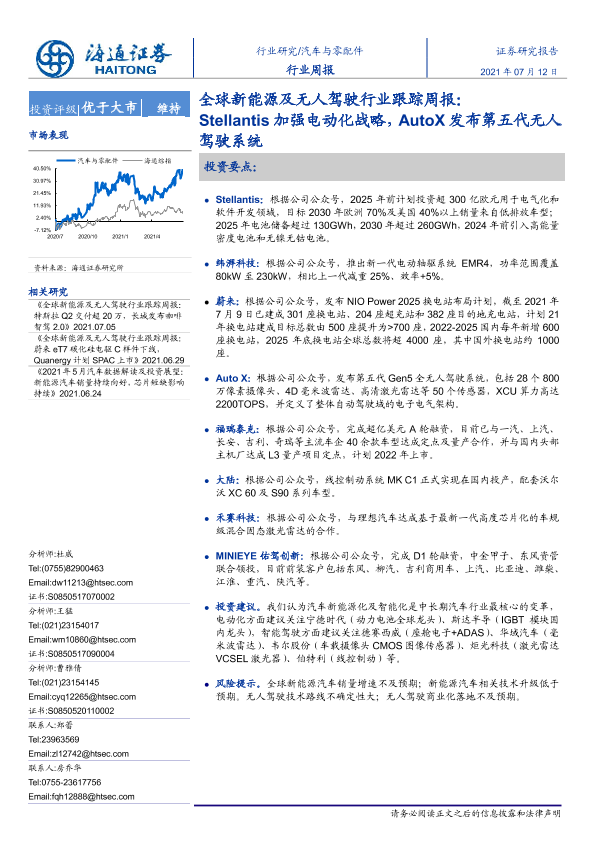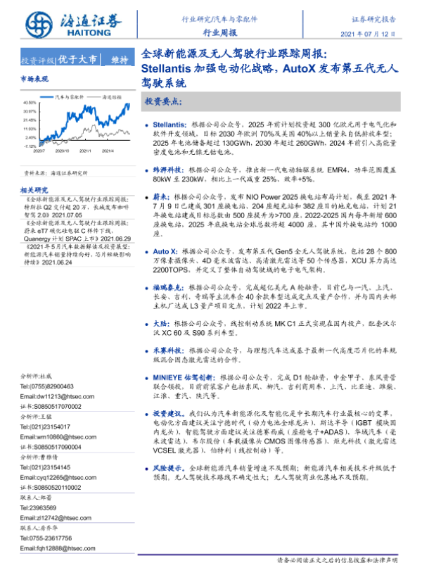【海通证券】【20210712】全球新能源及无人驾驶行业跟踪周报:Stellantis加强电动化战略,AutoX发布第五代无人驾驶系统-2页