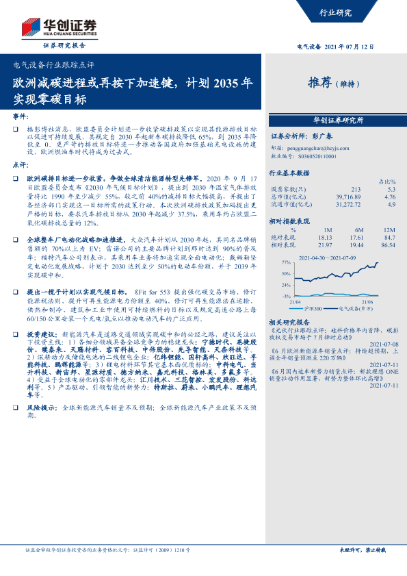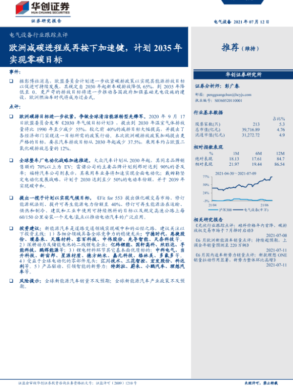 【华创证券】【20210712】电气设备行业跟踪点评:欧洲减碳进程或再按下加速键,计划2035年实现零碳目标-3页