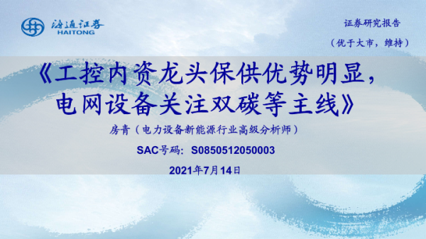 【海通证券】【20210714】工控内资龙头保供优势明显,电网设备关注双碳等主线-31页