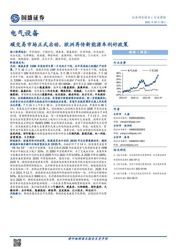 【国盛证券】【20210718】电气设备行业周报:碳交易市场正式启动,欧洲再传新能源车利好政策-14页