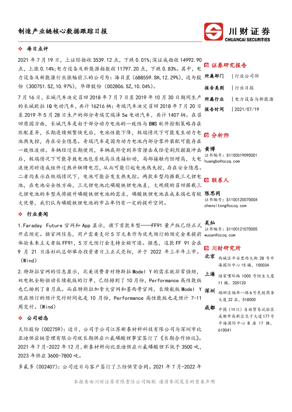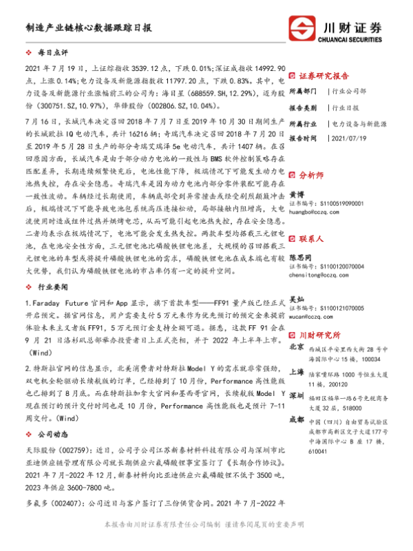 【川财证券】【20210719】制造产业链核心数据跟踪日报-5页
