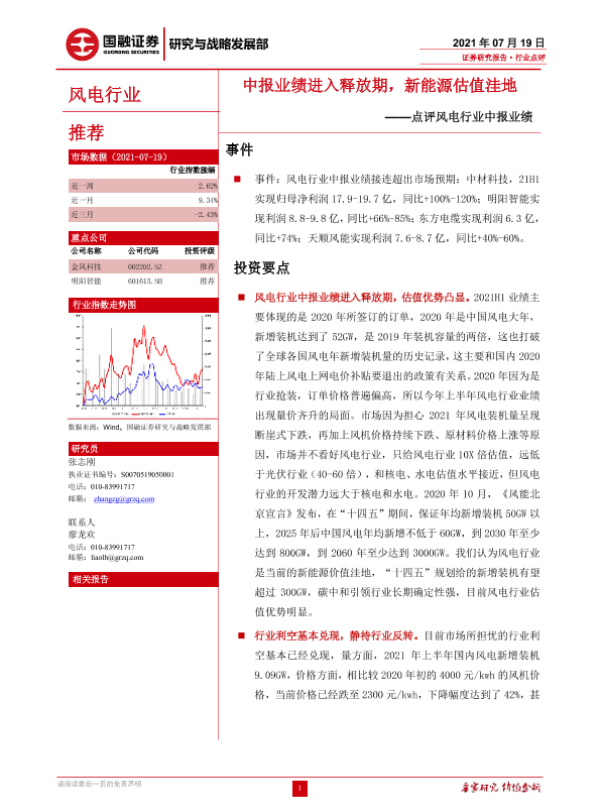 【国融证券】【20210719】点评风电行业中报业绩:中报业绩进入释放期,新能源估值洼地-3页