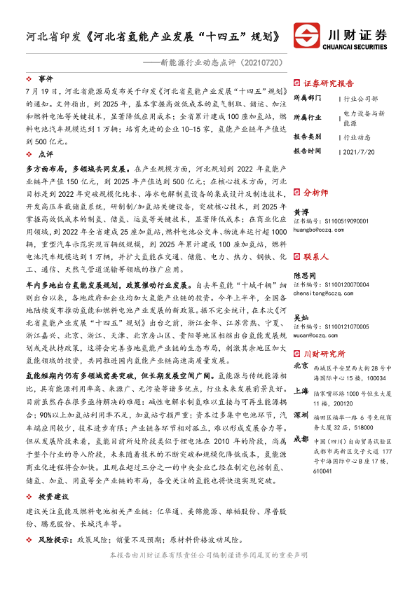 【川财证券】【20210720】河北省印发《河北省氢能产业发展“十四五”规划》-2页