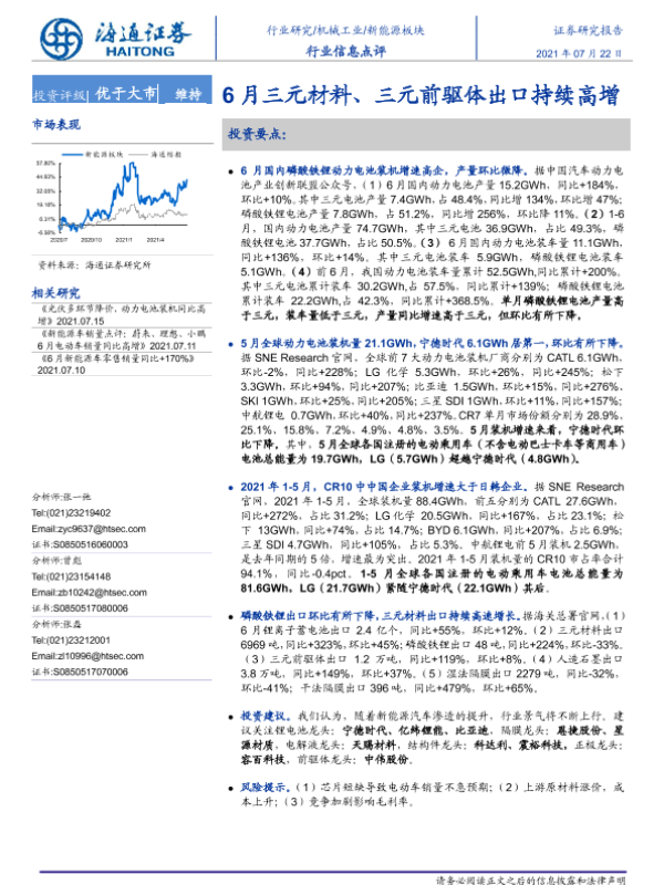 【海通证券】【20210722】20210722-海通证券-新能源板块行业信息点评:6月三元材料、三元前驱体出口持续高增-3页