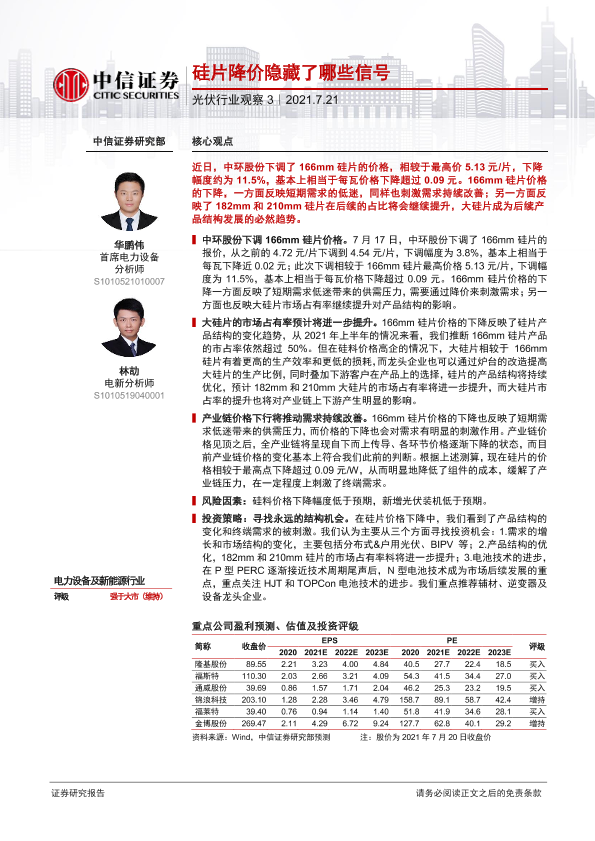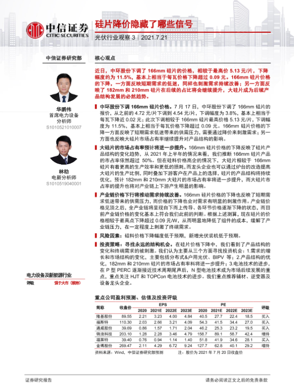 【中信证券】【20210721】光伏行业观察3:硅片降价隐藏了哪些信号-2页