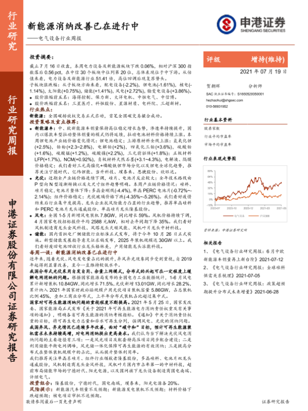 【申港证券】【20210719】电气设备行业周报:新能源消纳改善已在进行中-46页