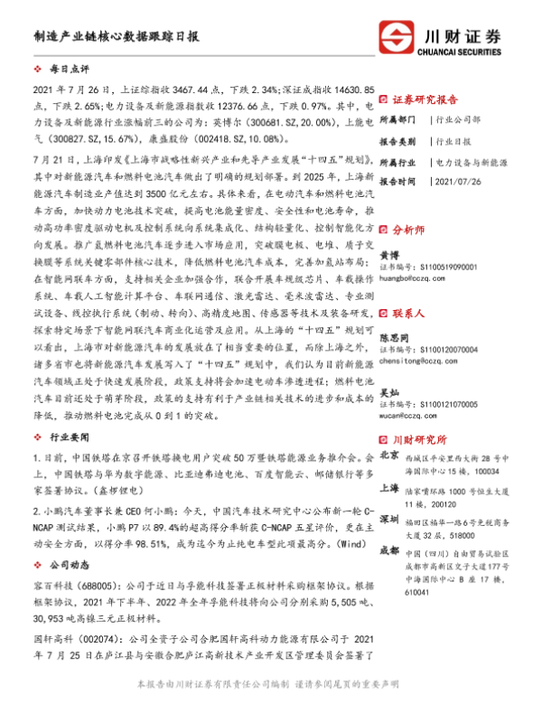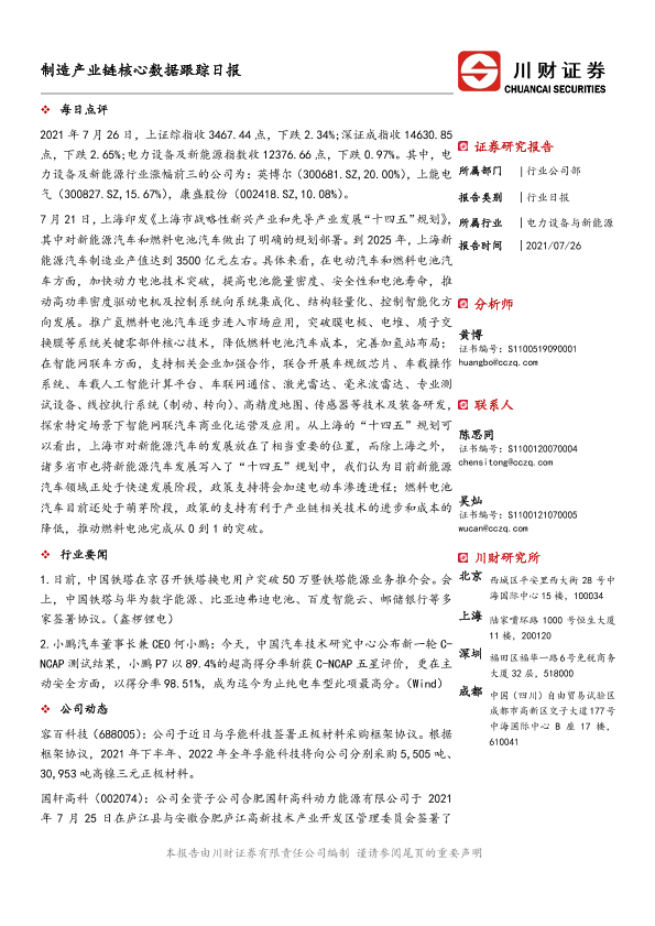 【川财证券】【20210726】20210726-川财证券-电力设备与新能源:制造产业链核心数据跟踪日报-5页