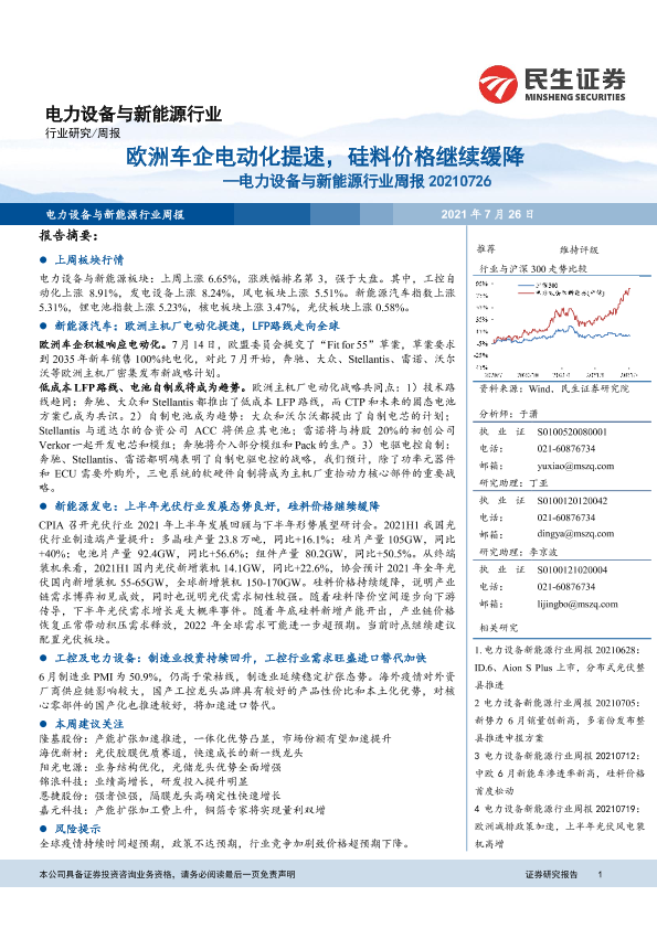 【民生证券】【20210726】电力设备与新能源行业周报:欧洲车企电动化提速,硅料价格继续缓降-20页