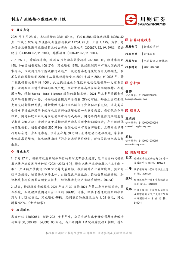 【川财证券】【20210728】制造产业链核心数据跟踪日报-5页