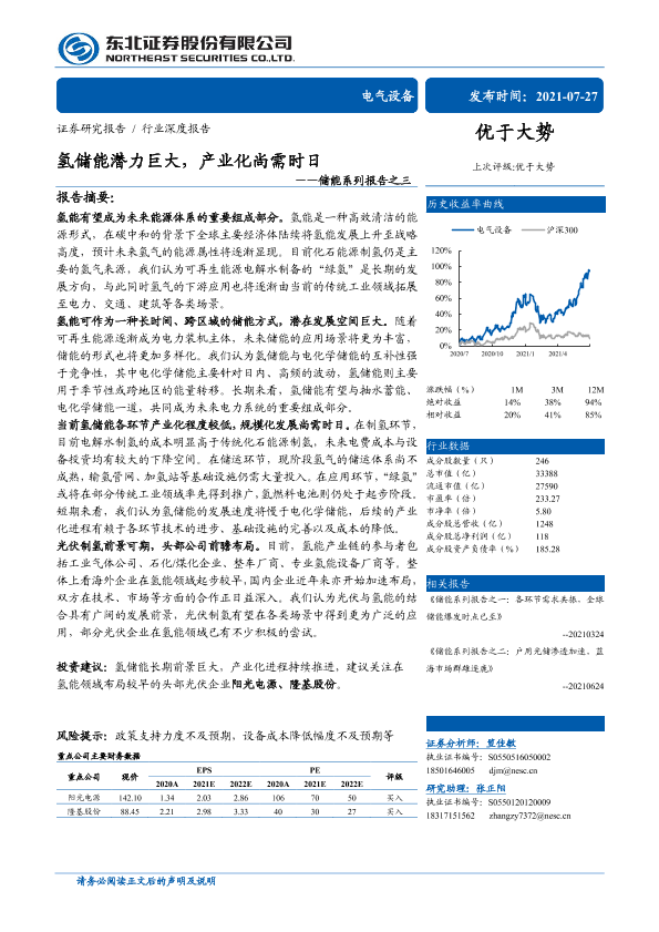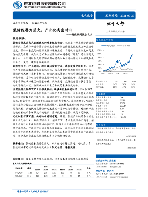 【东北证券】【20210727】氢储能潜力巨大,产业化尚需时日-32页