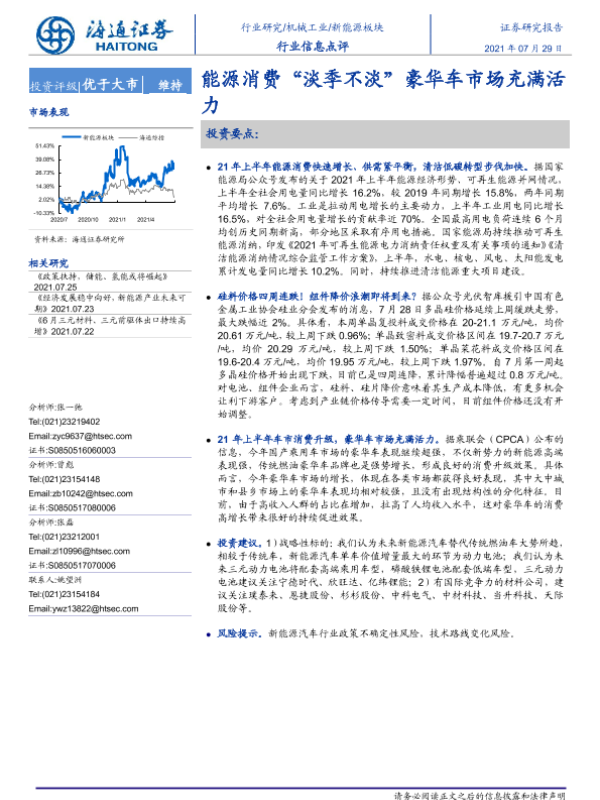 【海通证券】【20210729】20210729-海通证券-新能源板块行业信息点评:能源消费“淡季不淡”豪华车市场充满活力-2页