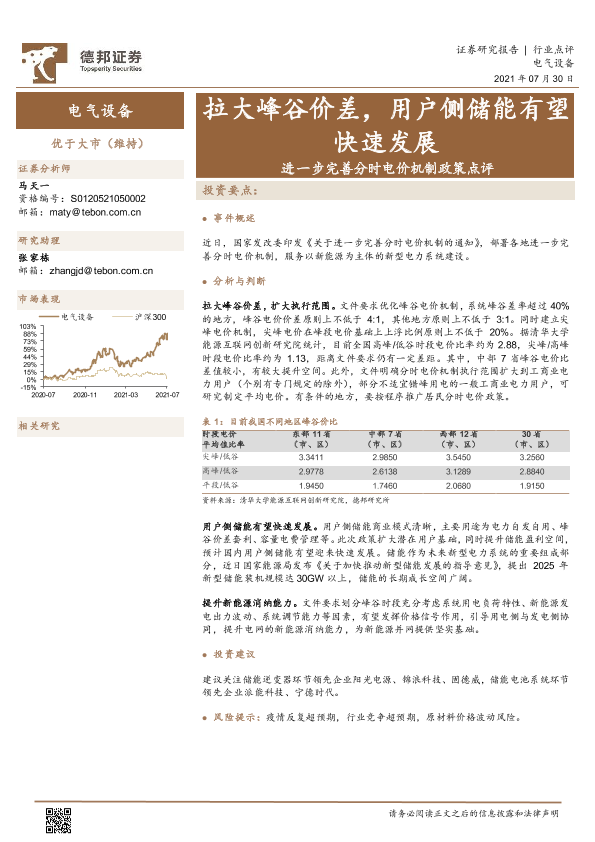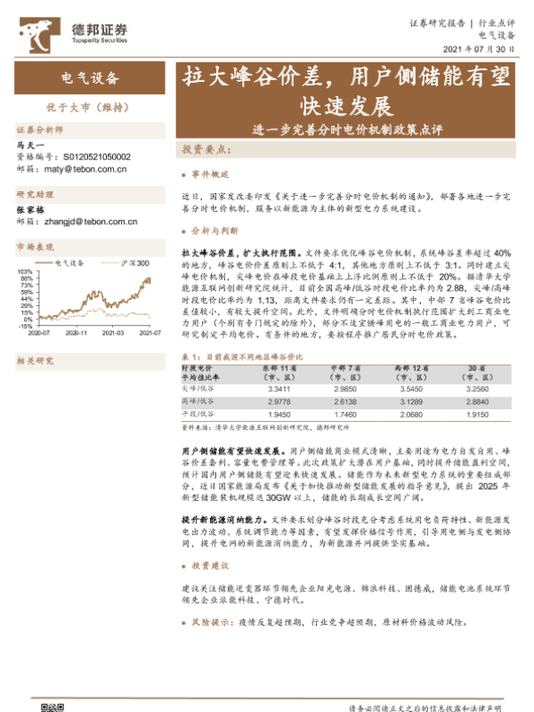 【德邦证券】【20210730】进一步完善分时电价机制政策点评:拉大峰谷价差,用户侧储能有望快速发展-3页