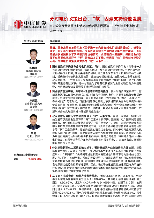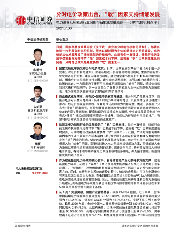 【中信证券】【20210730】电力设备及新能源行业储能与新能源发展跟踪——分时电价机制点评:分时电价政策出台,“软”因素支持储能发展-4页