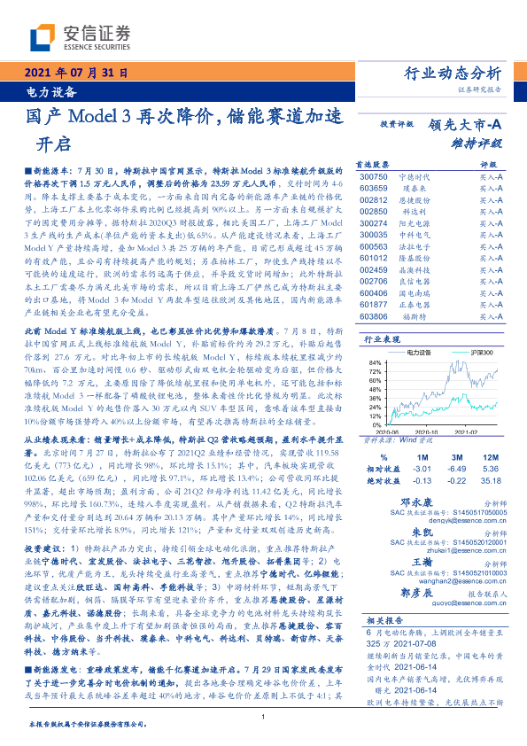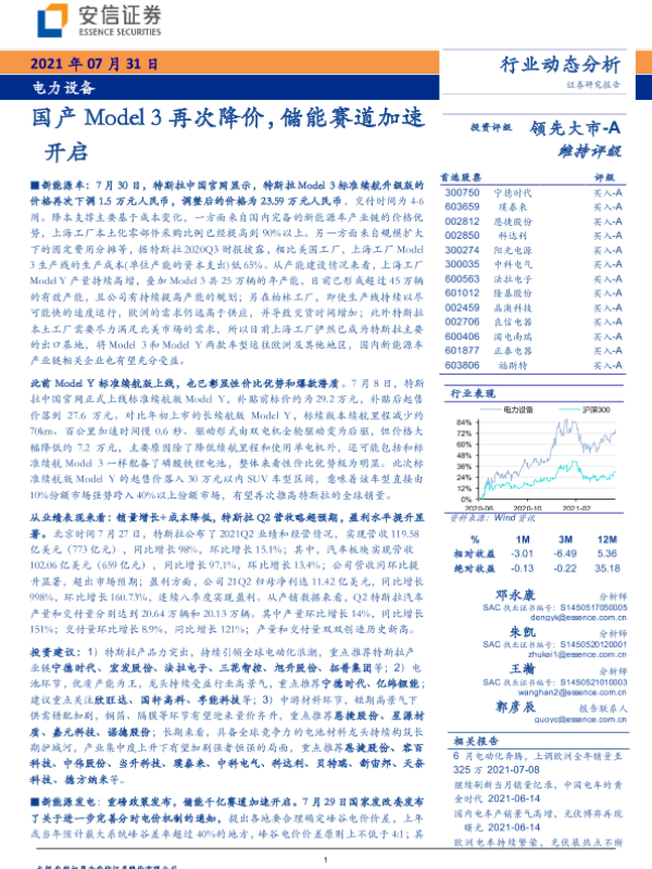 【安信证券】【20210731】电力设备行业动态分析:国产Model 3再次降价,储能赛道加速开启-30页