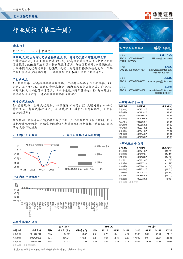 【华泰证券】【20210802】电力设备与新能源行业周报(第三十周)-16页