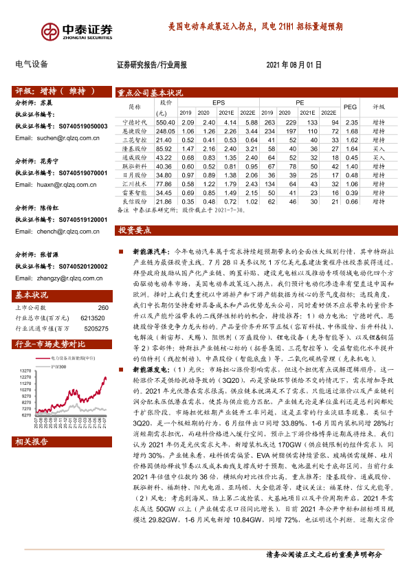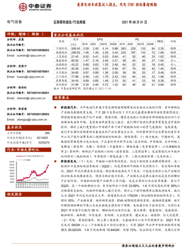 【中泰证券】【20210801】电气设备行业周报:美国电动车政策迈入拐点,风电21H1招标量超预期-24页