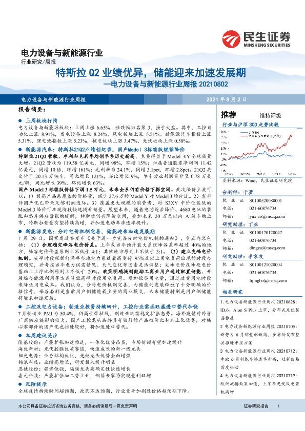 【民生证券】【20210802】电力设备与新能源行业周报:特斯拉Q2业绩优异,储能迎来加速发展期-20页