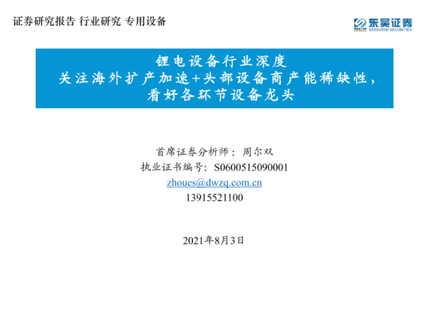 【东吴证券】【20210803】锂电设备行业深度:关注海外扩产加速 + 头部设备商产能稀缺性,看好各环节设备龙头-85页