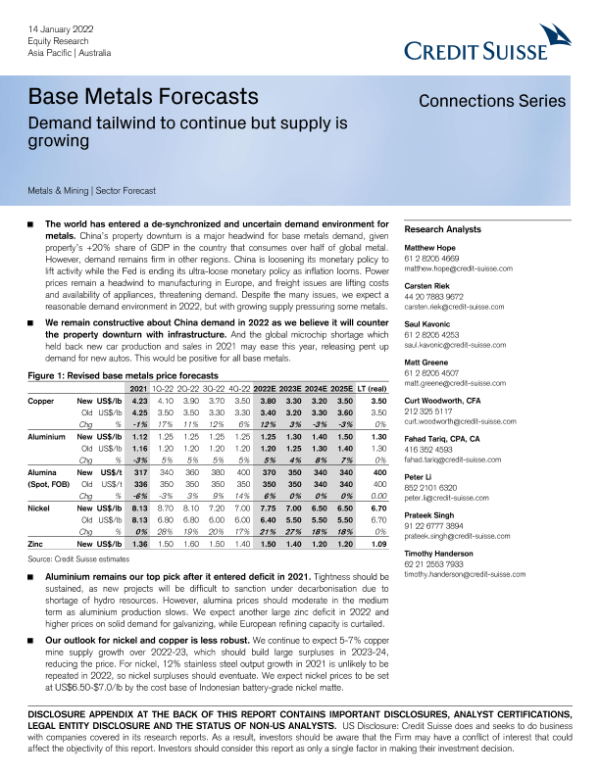 【Credit Suisse】【20220114】瑞信-亚太地区金属与矿产行业-需求仍将继续,但供应正在增长-58页