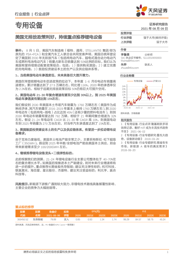 【天风证券】【20210809】专用设备:美国无排放政策利好,持续重点推荐锂电设备-2页