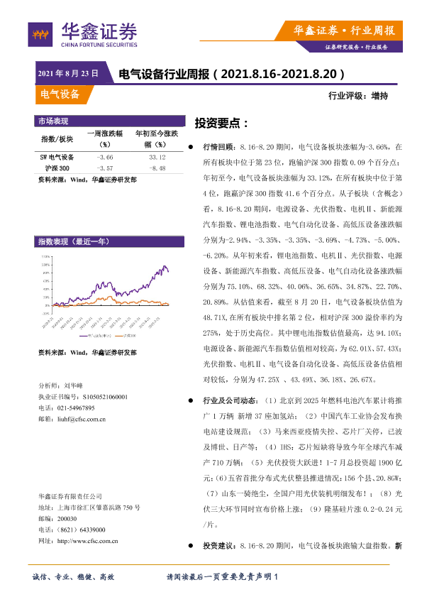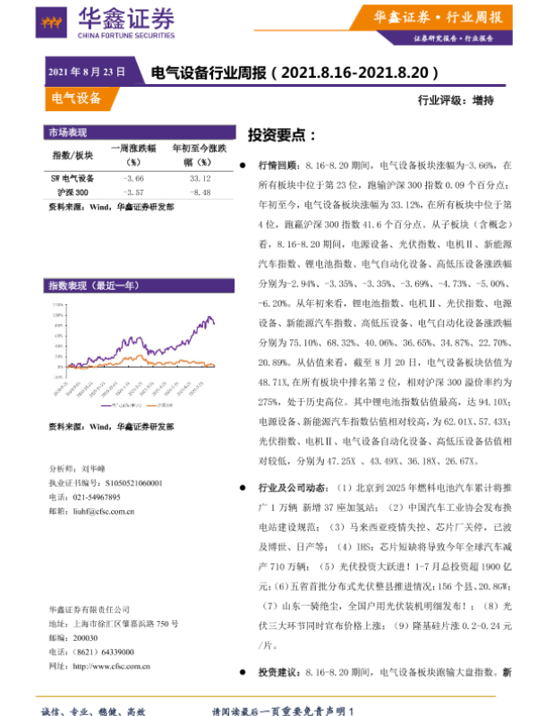 【华鑫证券】【20210823】电气设备行业周报-18页