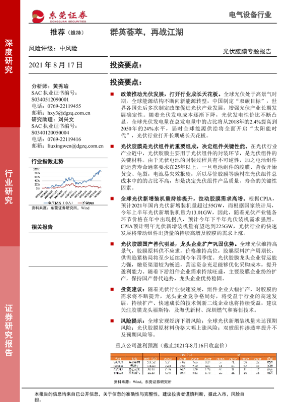 【东莞证券】【20210817】光伏胶膜专题报告:群英荟萃,再战江湖-32页