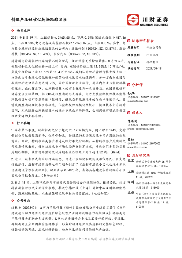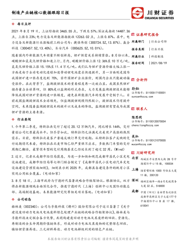 【川财证券】【20210819】制造产业链核心数据跟踪日报-5页