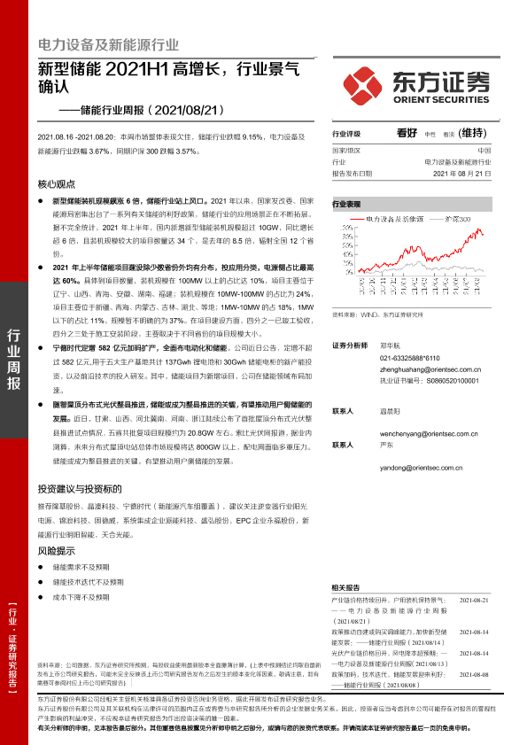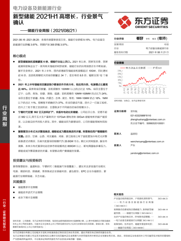 【东方证券】【20210821】储能行业周报:新型储能2021H1高增长,行业景气确认-19页