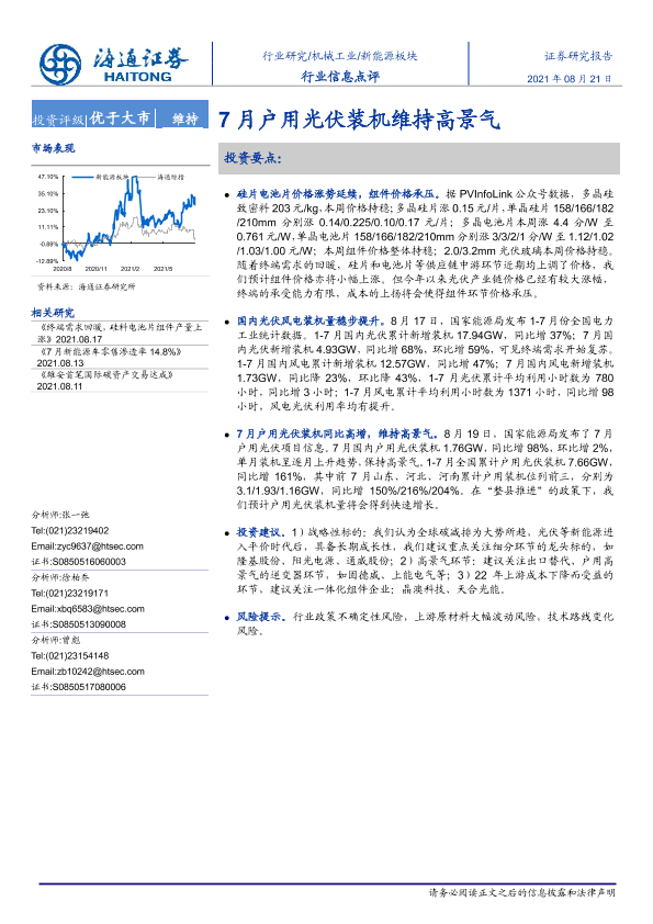 【海通证券】【20210821】20210821-海通证券-新能源板块行业信息点评:7月户用光伏装机维持高景气-2页
