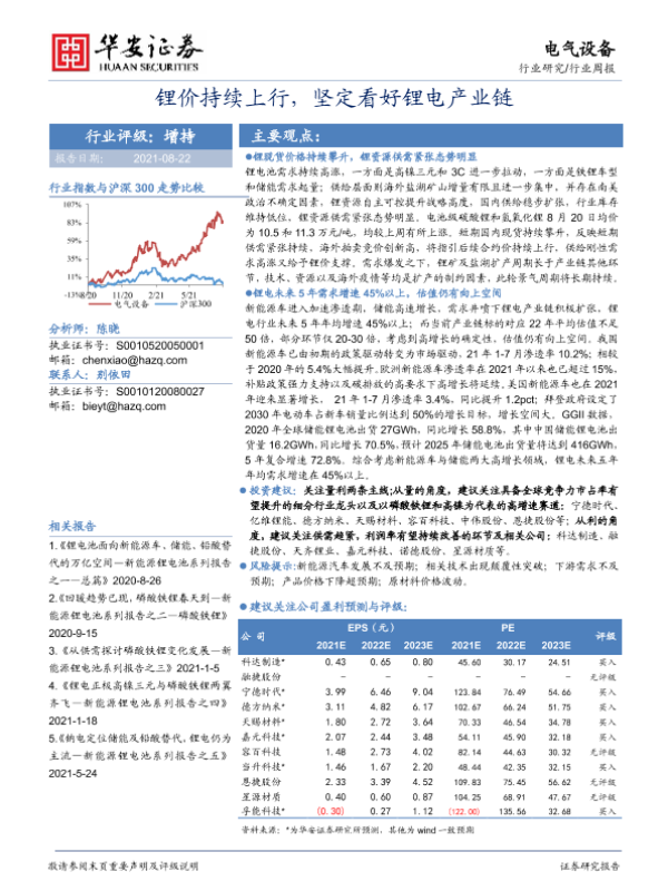 【华安证券】【20210822】20210821-华安证券-电气设备行业周报:锂价持续上行,坚定看好锂电产业链-22页