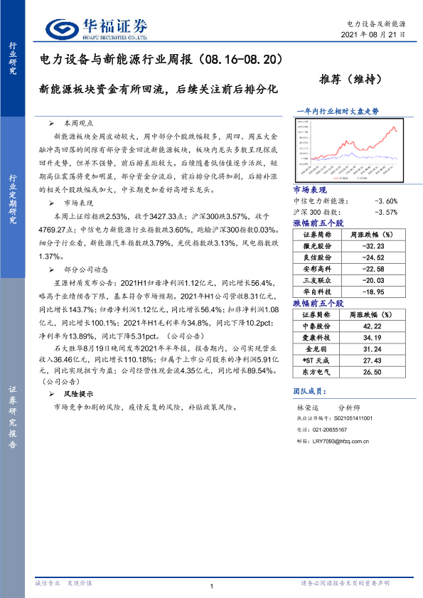 【华福证券】【20210821】电力设备与新能源行业周报:新能源板块资金有所回流,后续关注前后排分化-6页