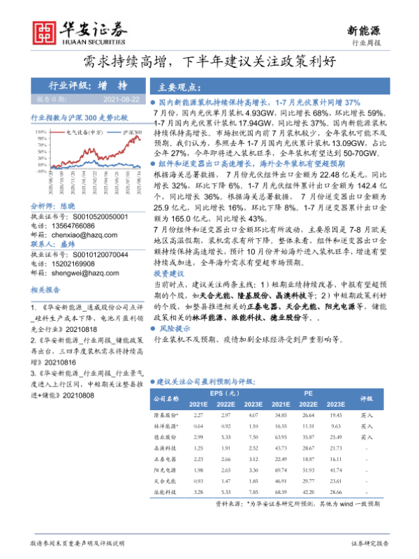 【华安证券】【20210822】20210822-华安证券-新能源行业周报:需求持续高增,下半年建议关注政策利好-15页