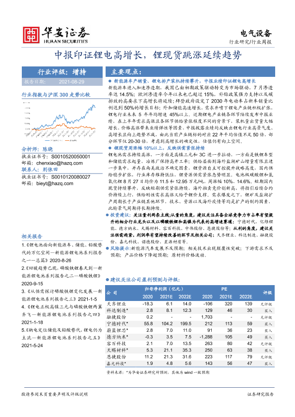 【华安证券】【20210829】20210829-华安证券-电气设备行业周报:中报印证锂电高增长,锂现货跳涨延续趋势-24页
