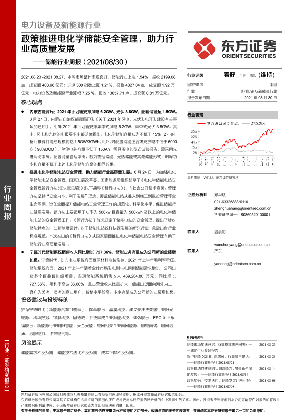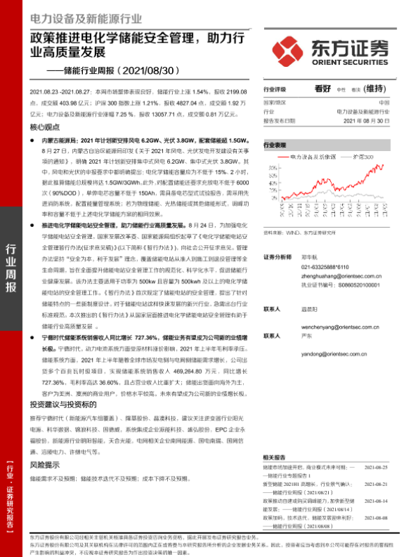 【东方证券】【20210830】20210830-东方证券-储能行业周报:政策推进电化学储能安全管理,助力行业高质量发展-15页