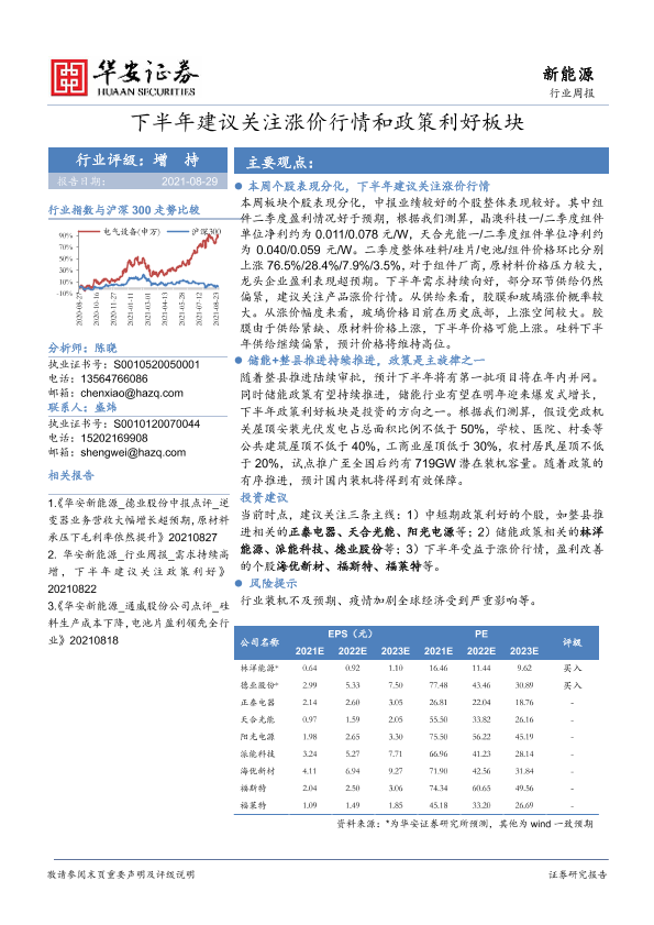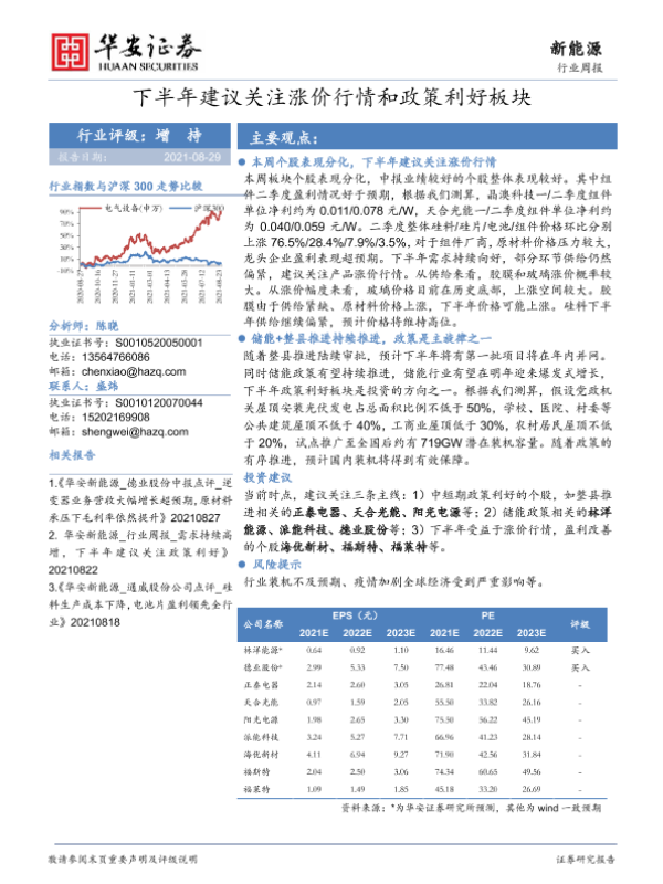 【华安证券】【20210829】20210829-华安证券-新能源行业周报:下半年建议关注涨价行情和政策利好板块-15页