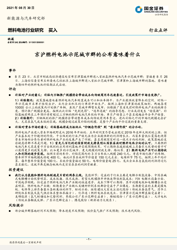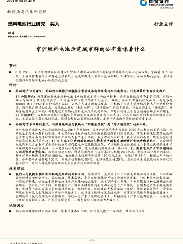 【国金证券】【20210830】燃料电池行业研究:京沪燃料电池示范城市群的公布意味着什么-3页