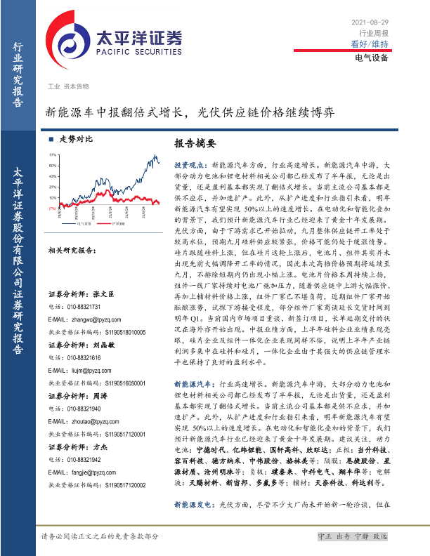 【太平洋证券】【20210829】电气设备周报:新能源车中报翻倍式增长,光伏供应链价格继续博弈-19页
