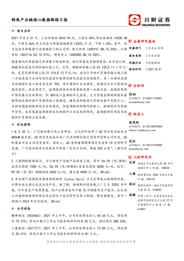 【川财证券】【20210831】制造产业链核心数据跟踪日报-5页