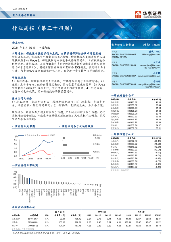 【华泰证券】【20210830】电力设备与新能源行业周报(第三十四周)-19页