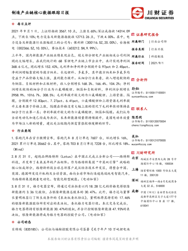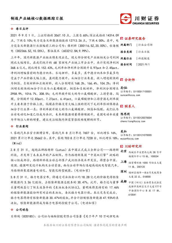 【川财证券】【20210901】制造产业链核心数据跟踪日报-5页