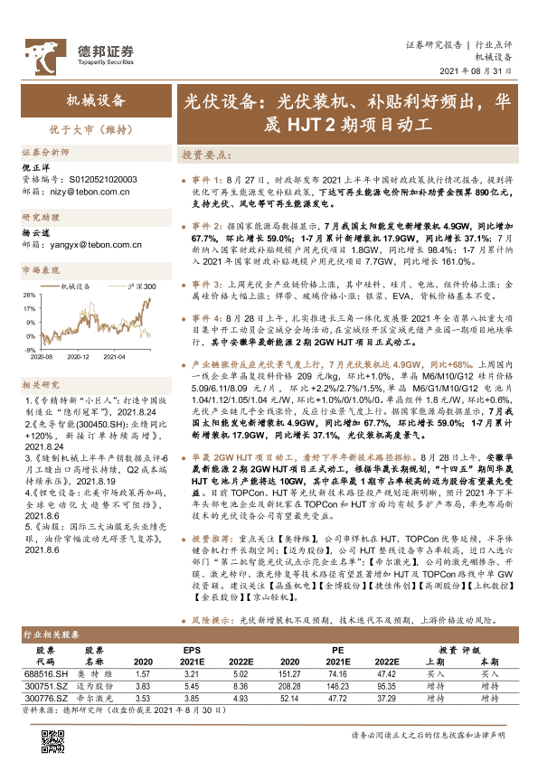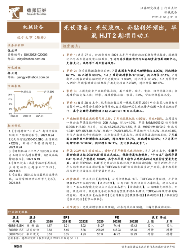 【德邦证券】【20210831】光伏设备:光伏装机、补贴利好频出,华晟HJT2期项目动工-2页