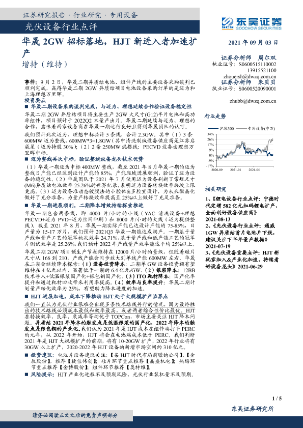 【东吴证券】【20210903】光伏设备行业点评:华晟2GW招标落地,HJT新进入者加速扩-5页