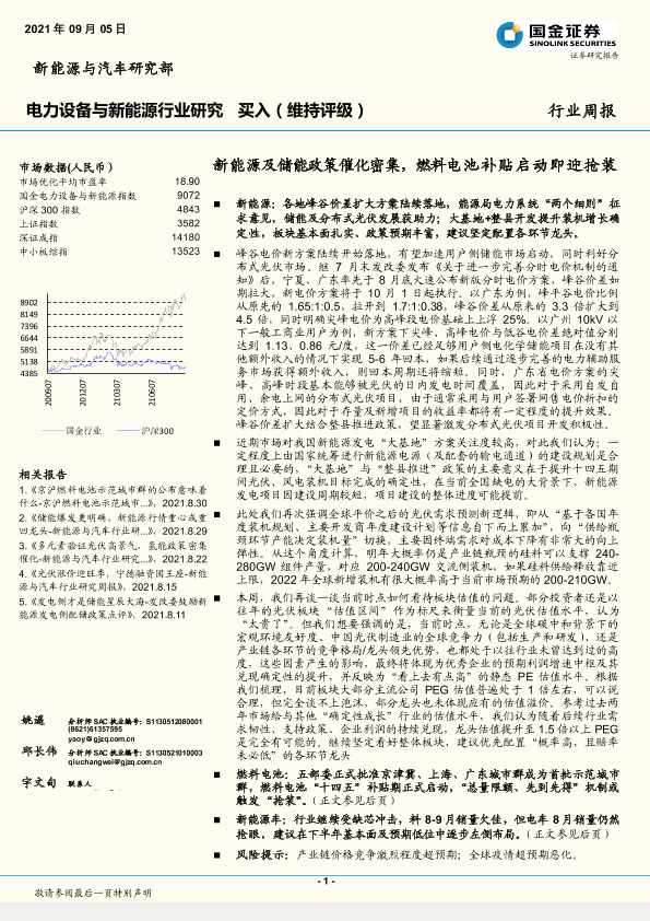 【国金证券】【20210905】电力设备与新能源行业周报:新能源及储能政策催化密集,燃料电池补贴启动即迎抢装-5页