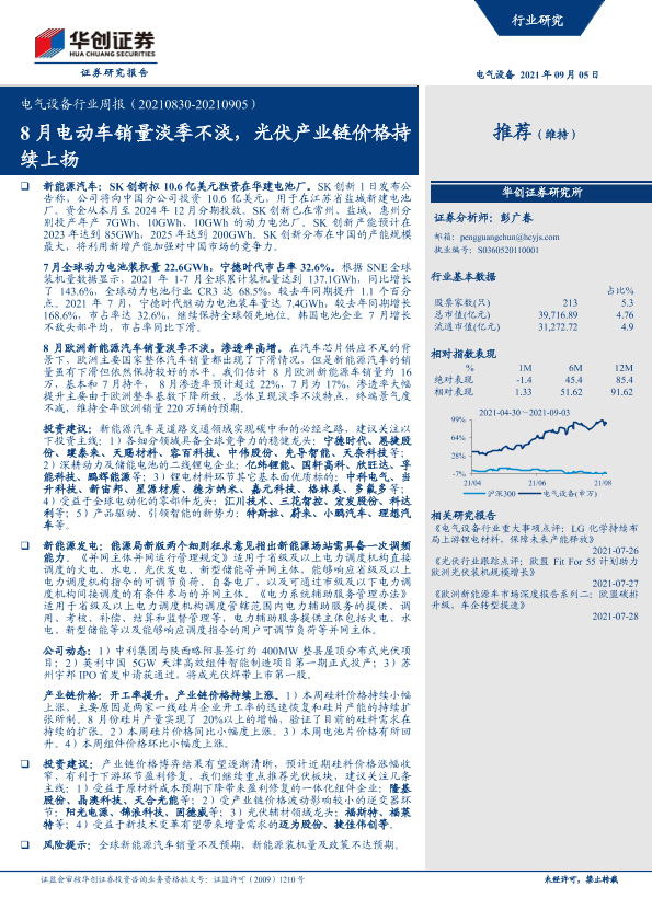 【华创证券】【20210905】电气设备行业周报:8月电动车销量淡季不淡,光伏产业链价格持续上扬-21页