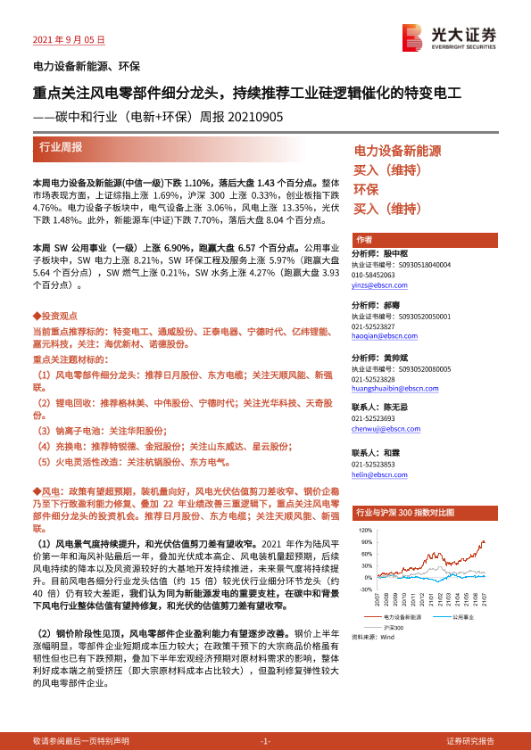 【光大证券】【20210905】碳中和行业(电新+环保)周报:重点关注风电零部件细分龙头,持续推荐工业硅逻辑催化的特变电工-42页