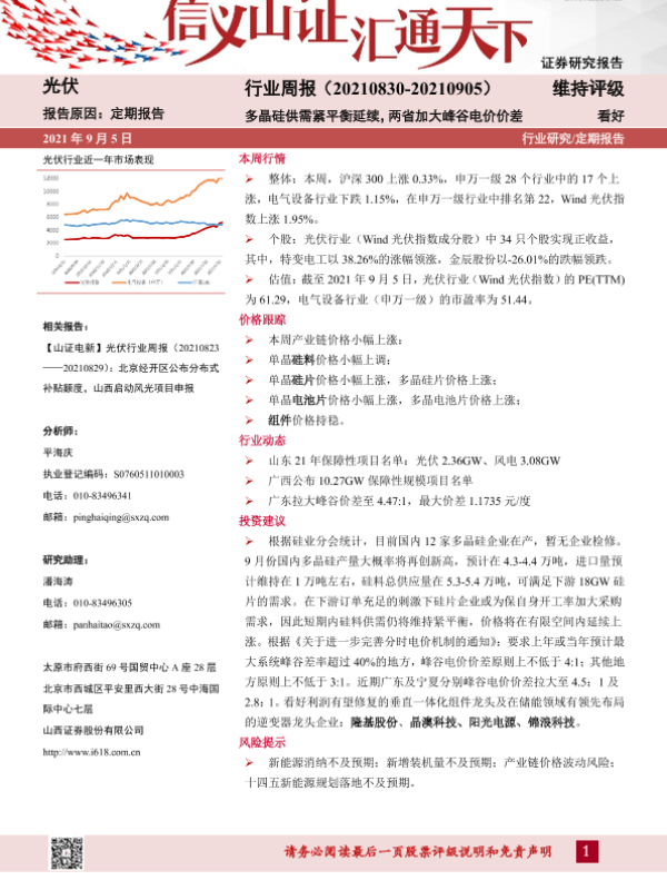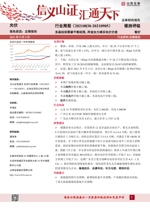 【山西证券】【20210905】20210905-山西证券-光伏行业周报:多晶硅供需紧平衡延续,两省加大峰谷电价价差-10页