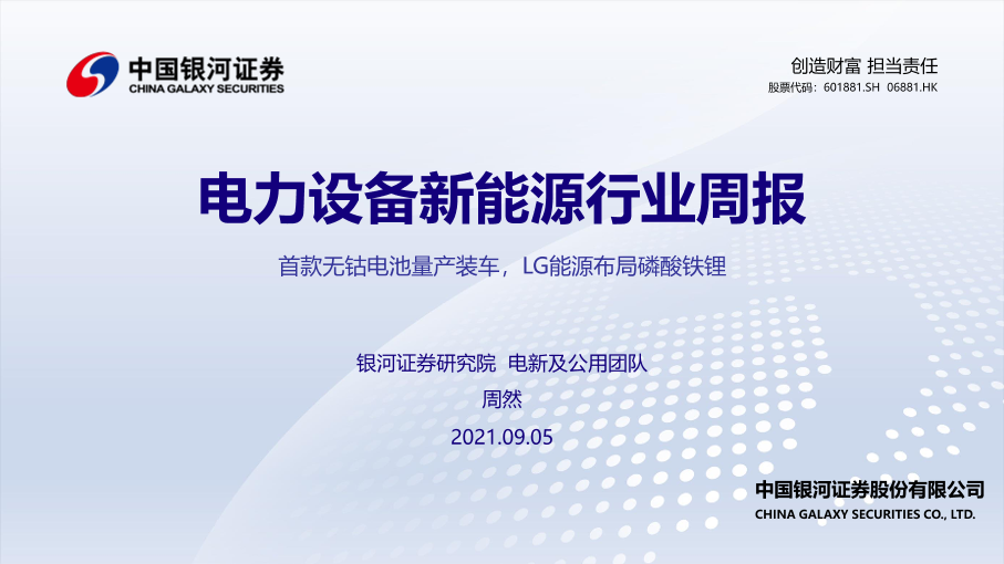 【银河证券】【20210905】电力设备新能源行业周报:首款无钴电池量产装车,LG能源布局磷酸铁锂-47页