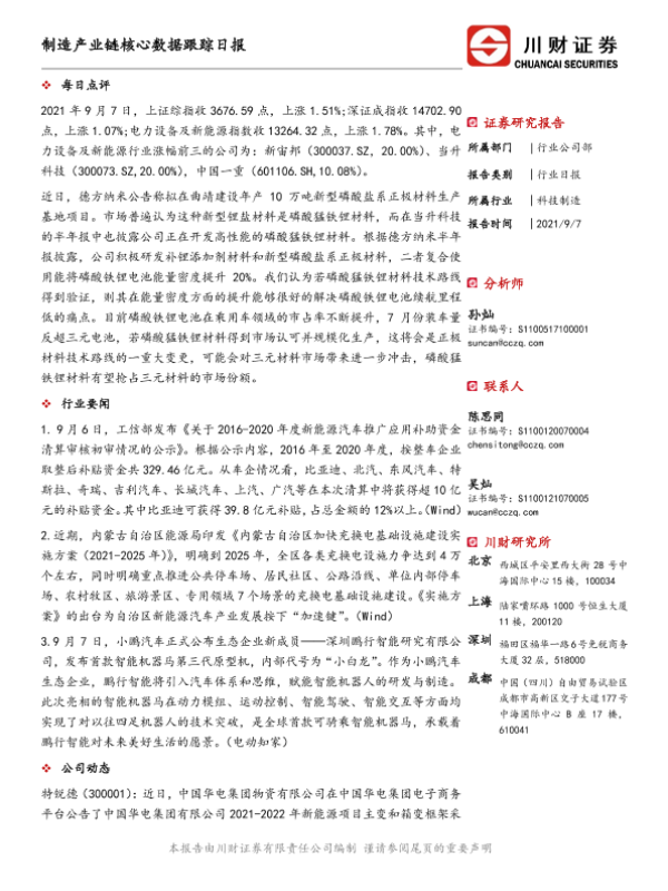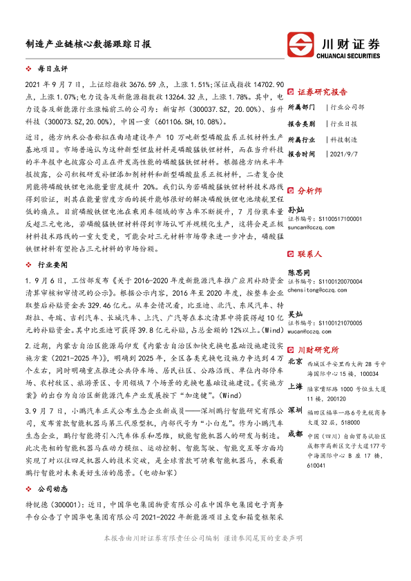 【川财证券】【20210907】制造产业链核心数据跟踪日报-5页